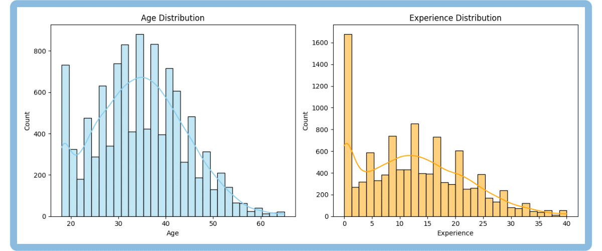 for col in ['Age', 'Experience']: